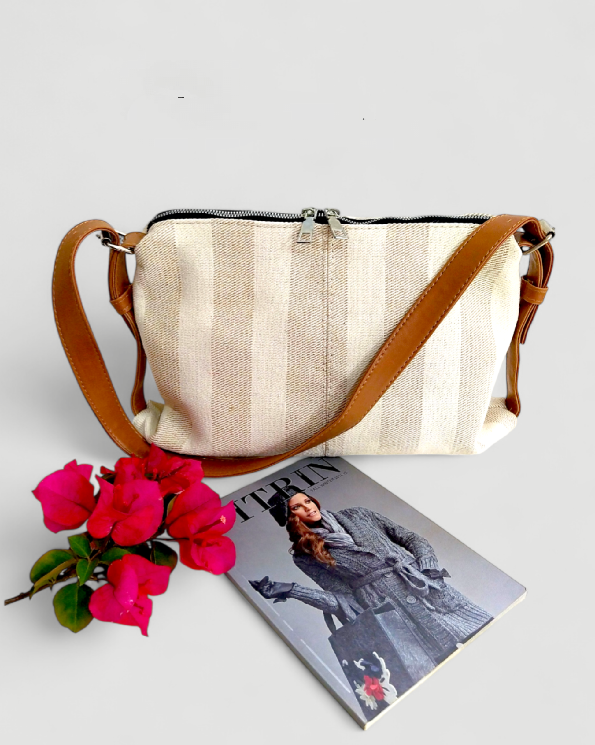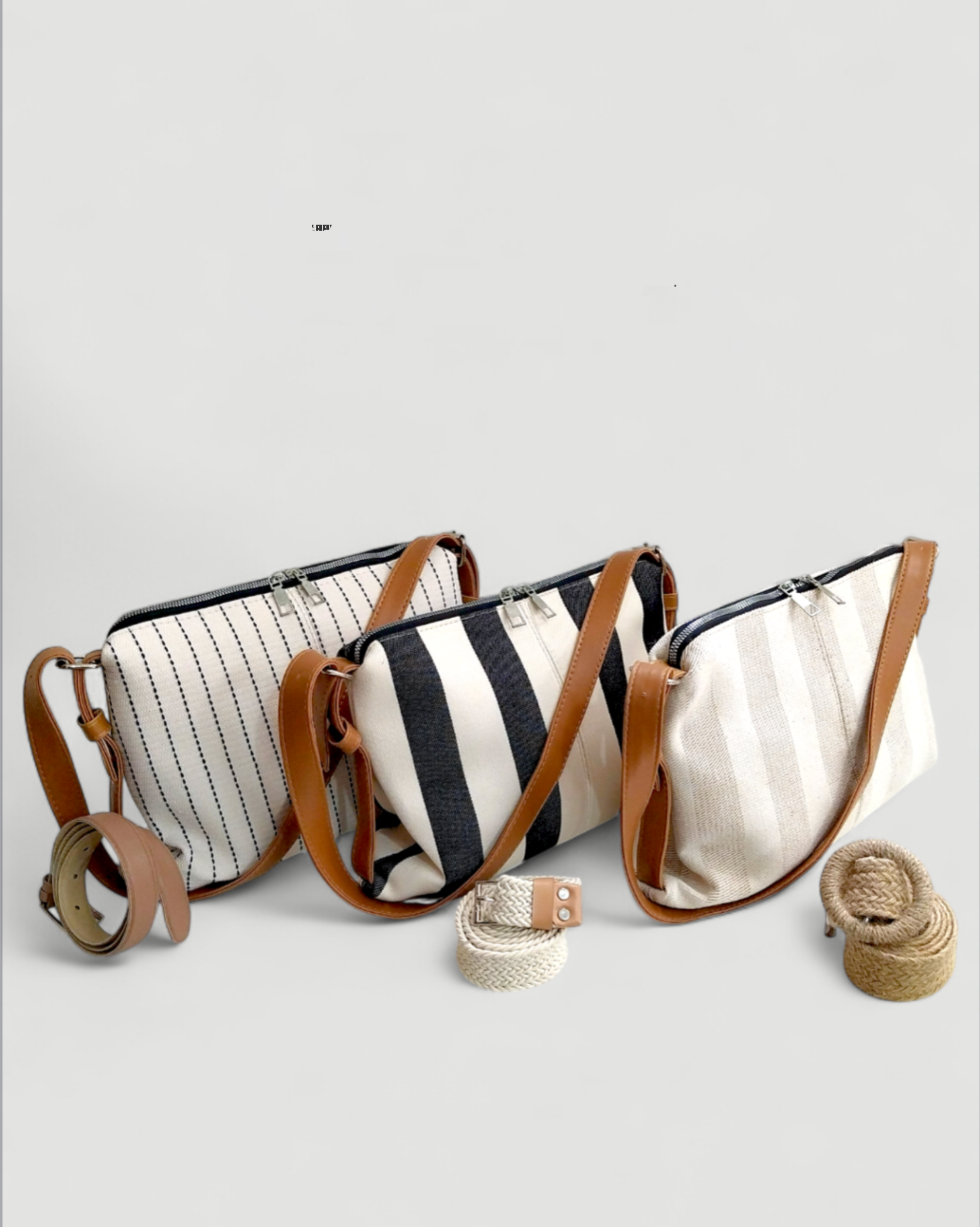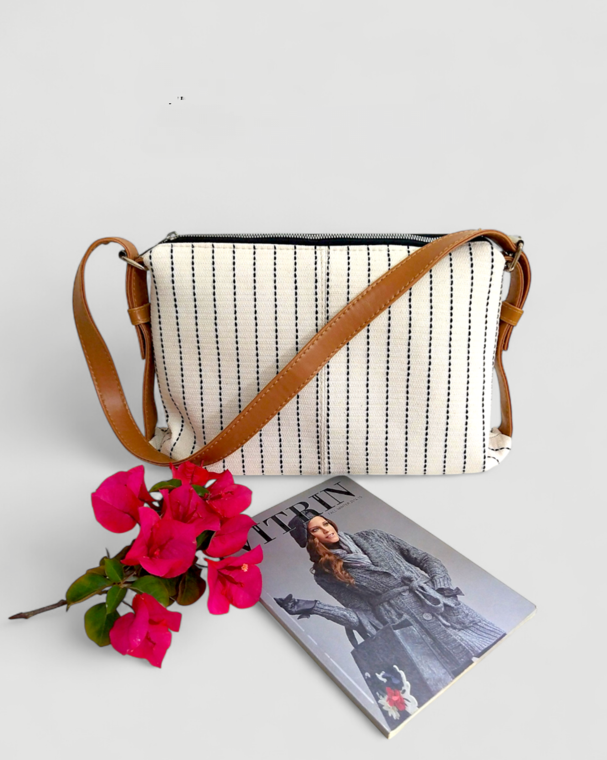 کیف کنفی راه راه/داخل کیف جیب زیپدار